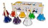 Разноцветных колокольчиков в деревянной коробке GOLDON 33855- 8 Glocken- 8 - 8 разноцветных стальных колокольчиков, тонкая настройка c '' - c '' 'и 8 деревянных колотушек.
