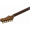 Гриф выполнен из канадского печеного клена (roasted maple). При такой обработке поры дерева максимально сжимаются и в процессе использования вода уже не будет выходить, ваша накладка не сожмется и лады не повылазят вне зависимости от влажности и смены температуры. Плюс такое дерево выглядит очень красиво.