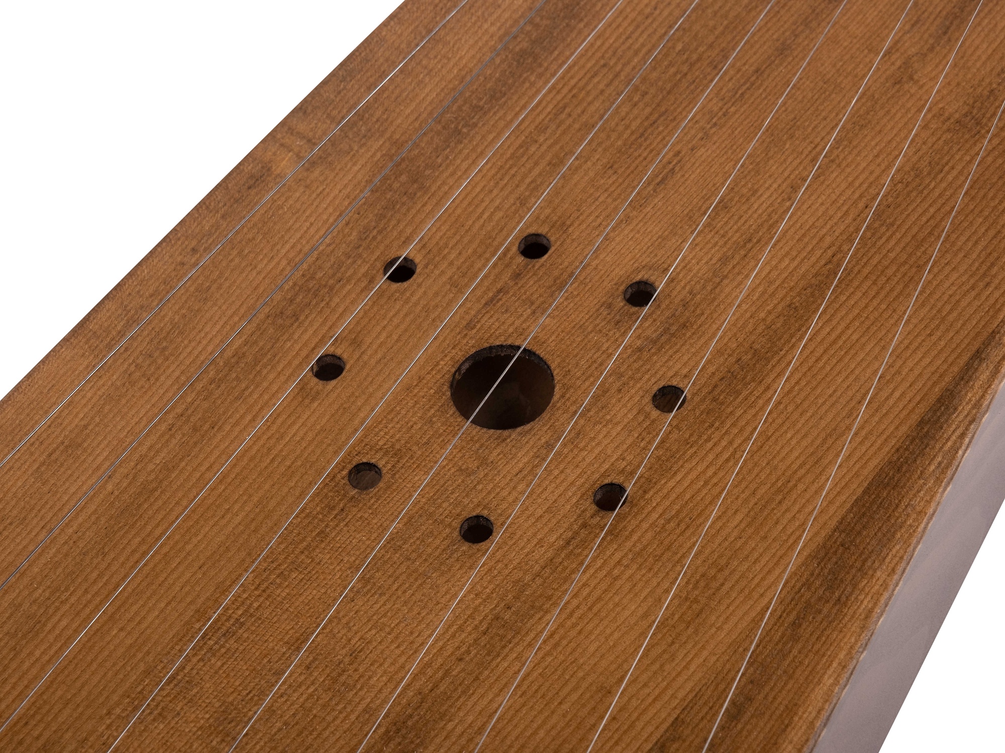 Высококачественное лаковое покрытие, благодаря которому гусли сохраняют приятный запах натуральной древесины, а также устойчивы к внешним воздействиям.