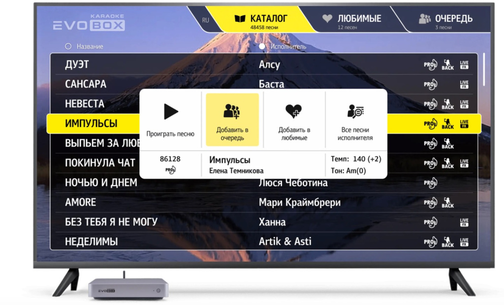 Обширный репертуар. Более 20 000 песен в высоком качестве уже в комплекте. Регулярное обновление библиотеки позволяет всегда оставаться в тренде музыкальных хитов. Есть возможность покупать песни поштучно.