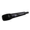 Ручной передатчик в металлическом корпусе представляет собой динамический микрофон с кардиоидной диаграммой направленности. Благодаря такой конструкции он практически не подвержен восприятию посторонних шумов и не чувствителен к возникновению обратной связи. На корпусе имеется ЖК-дисплей, на котором отображается уровень заряда батареи и настроенная частота, а так же ИК-порт для связи с приемником. Питание микрофона осуществляется двумя батареями типа АА, а время его непрерывной работы до 8 часов.